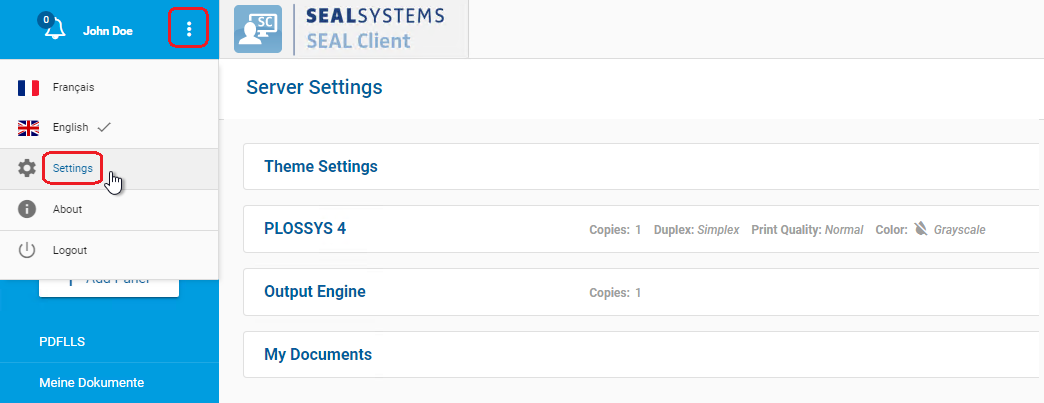 2. Open the Server Settings by selecting Settings in the user menu.